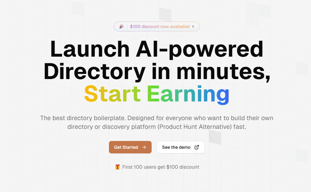 ⚙️ Complete Boilerplate Template Built with Next.js, TypeScript, Prisma, Tailwind CSS, and more — ready to deploy 🤖 AI-Powered Listing Tools AI auto-extracts product data and screenshots from URLs; supports bulk import for fast setup 💰 Monetization-Ready Supports affiliate links, paid submissions, sponsored ads, SEO articles, and newsletter promotions 🧾 Authentication System Includes Google, GitHub, and email/password login powered by Clerk 📈 Built-in Admin + Client Dashboards Manage users, content, and submissions via user-friendly dashboards 🗳️ Upvotes, Comments, SEO, Analytics Fully integrated upvoting system, commenting, Plausible analytics, and out-of-the-box SEO optimizations