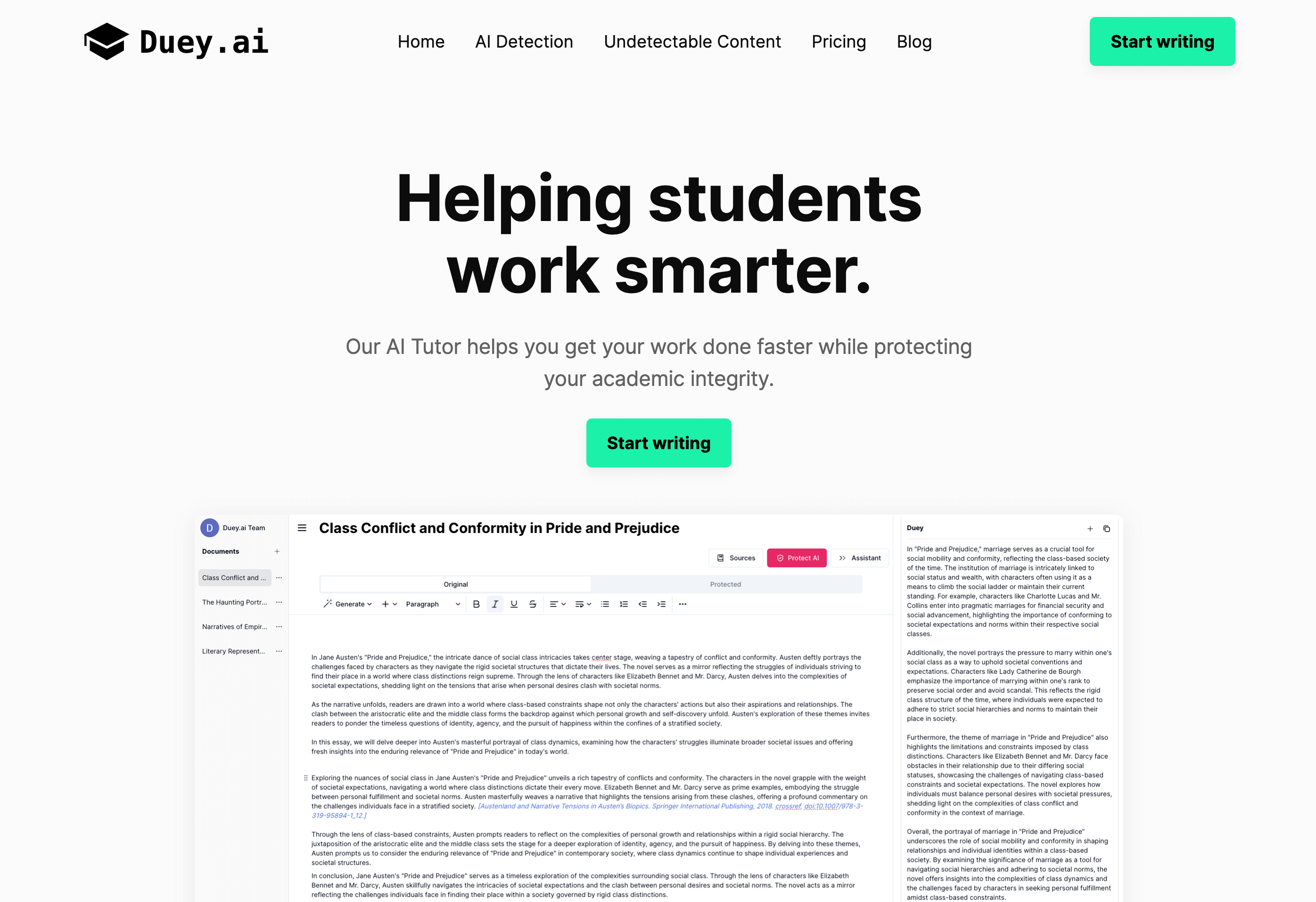 AI writing assistant designed to help students, writers, and professionals create, edit, and humanize AI-generated content to make it undetectable by AI detectors.