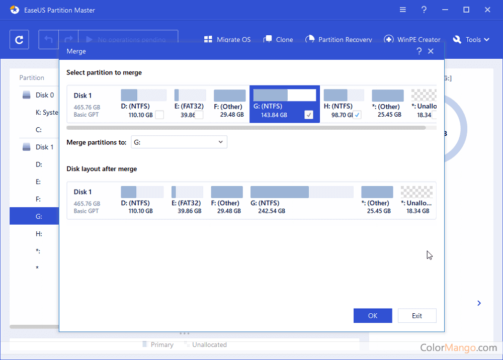 2. Right Click the “resizemove” option on the disk that need to be freed up. Move the mouse to the box, drag the left arrow to the right for some distance. Right click to select the “resizemove” option above the disk that needs to have space increased. Move the mouse to the box, drag the right arrow to the right end. Select the apply option in the left column.","reviewRating": {"@type": "Rating","ratingValue": "5"}},{"@type": "Review","author": {"@type":"Person","name":"Angela"},"reviewBody": "Very easy to use. It runs well on my 64-bit win7 system. It can expand the C disk space but without any data loss.","reviewRating": {"@type": "Rating","ratingValue": "5"}},{"@type": "Review","author": {"@type":"Person","name":"dgc"},"reviewBody": "Easy to use. Got back my 160G lost partition","reviewRating": {"@type": "Rating","ratingValue": "5"}},{"@type": "Review","author": {"@type":"Person","name":"Tim Mate"},"reviewBody": "After a long time of use, it can adjust size of partition as you want, include system partition, and no data lost. the operation is too easy, great partition tool!","reviewRating": {"@type": "Rating","ratingValue": "5"}},{"@type": "Review","author": {"@type":"Person","name":"Luna62"},"reviewBody": "I've always used it. It's a very good software. I previous used Win7 system, 300G hard drive. I’ve used this program tool to extend the C disk drive, and no problem, everything runs well, very stable. And yesterday, I changed my Win7 system to Win10, and expand C drive, no problem at all.","reviewRating": {"@type": "Rating","ratingValue": "5"}},{"@type": "Review","author": {"@type":"Person","name":"ColorMango Customer"},"reviewBody": "Super awesome software. It has fixed up my C disk space shortage","reviewRating": {"@type": "Rating","ratingValue": "5"}},{"@type": "Review","author": {"@type":"Person","name":"Fabiola"},"reviewBody": "It helped me a lot, so good! I like it’s really as what it said – without any data loss, it is worth to be recommended. I successfully adjusted the partition, but the whole process took me a bit long time, about an hour, only separated 10g from the 140g disk to a 30g disk. I hope the speed can be improved. Copying files is only 5M/S or so.","reviewRating": {"@type": "Rating","ratingValue": "4"}},{"@type": "Review","author": {"@type":"Person","name":"P. Smith"},"reviewBody": "It’s very good to use. My computer has two unallocated space. I have used many software and it still didn't work. I use this software and it directly distribute to the C drive and D drive. Excellent.","reviewRating": {"@type": "Rating","ratingValue": "5"}},{"@type": "Review","author": {"@type":"Person","name":"Mika"},"reviewBody": "It works just by a direct drag. Very good, very powerful. I have used it twice. The hard disk is undamaged","reviewRating": {"@type": "Rating","ratingValue": "5"}},{"@type": "Review","author": {"@type":"Person","name":"D G."},"reviewBody": "This is a very good software, my laptop was WIN7 before. It has installed some software. The C drive frequently gives emergency warning. With this software, I separated 10G to the C drive from the D disk space. It's quite useful!","reviewRating": {"@type": "Rating","ratingValue": "5"}},{"@type": "Review","author": {"@type":"Person","name":"Sam"},"reviewBody": "So good! There is no data loss after the disk partition.","reviewRating": {"@type": "Rating","ratingValue": "5"}},{"@type": "Review","author": {"@type":"Person","name":"Roy Estaris"},"reviewBody": "A very easy to use software! I have wrestled with it for a long time and finally understood that when you expand the C drive, the other disk has to give up some free partition. For example, D disk must distribute the free zone in the before rather than in the after. It means that the free partition should be given to the front of the disk. In this way, the C disk will have some expanded space","reviewRating": {"@type": "Rating","ratingValue": "5"}},{"@type": "Review","author": {"@type":"Person","name":"ColorMango Customer"},"reviewBody": "All about those bad reviews, guys, to be fair, is this software really that bad? I’ve used it, and I know it’s not bad but really good, ya, it’s so good that I can hardly believe it. I recommend it! Thanks.","reviewRating": {"@type": "Rating","ratingValue": "5"}},{"@type": "Review","author": {"@type":"Person","name":"skc"},"reviewBody": "It’s great! Just drag, drop and check the box to complete.","reviewRating": {"@type": "Rating","ratingValue": "5"}},{"@type": "Review","author": {"@type":"Person","name":"Garnet"},"reviewBody": "Very easy to use. Without any data loss and damaged.","reviewRating": {"@type": "Rating","ratingValue": "5"}},{"@type": "Review","author": {"@type":"Person","name":"Instapoke"},"reviewBody": "Very easy to use. 300G hard drive, It took me less than 5 minutes to restart and disk format.","reviewRating": {"@type": "Rating","ratingValue": "5"}},{"@type": "Review","author": {"@type":"Person","name":"Conan25"},"reviewBody": "It’s a great software, very easy to use, with user friendly interface and powerful features.","reviewRating": {"@type": "Rating","ratingValue": "5"}},{"@type": "Review","author": {"@type":"Person","name":"Commoncents"},"reviewBody": "As I needed expand my C disk drive, and I didn’t want to re-install the system and programs, by chance, I found this software, I had to say it’s really easy to use and really helpful.","reviewRating": {"@type": "Rating","ratingValue": "5"}},{"@type": "Review","author": {"@type":"Person","name":"Sandal"},"reviewBody": "It’s awesome! As my C drive is short of space on win10 system, I’ve been worried about it for several months, but now, this software help me to solve this problem, just make a directly drag.","reviewRating": {"@type": "Rating","ratingValue": "5"}},{"@type": "Review","author": {"@type":"Person","name":"Wojo"},"reviewBody": "You have to adjust from the left side of the D drive in order to partition the space to the C dri