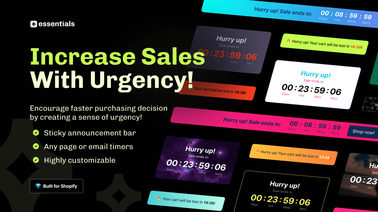 Drive urgency and boost sales with customizable countdown timers across your store.