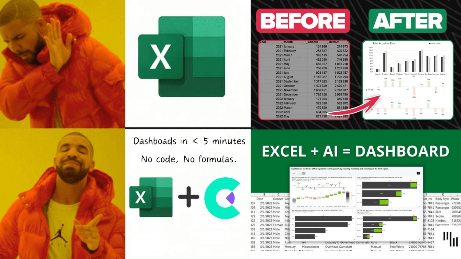 Generate Excel dashboards with AI—no formulas, no design skills, just plain English.