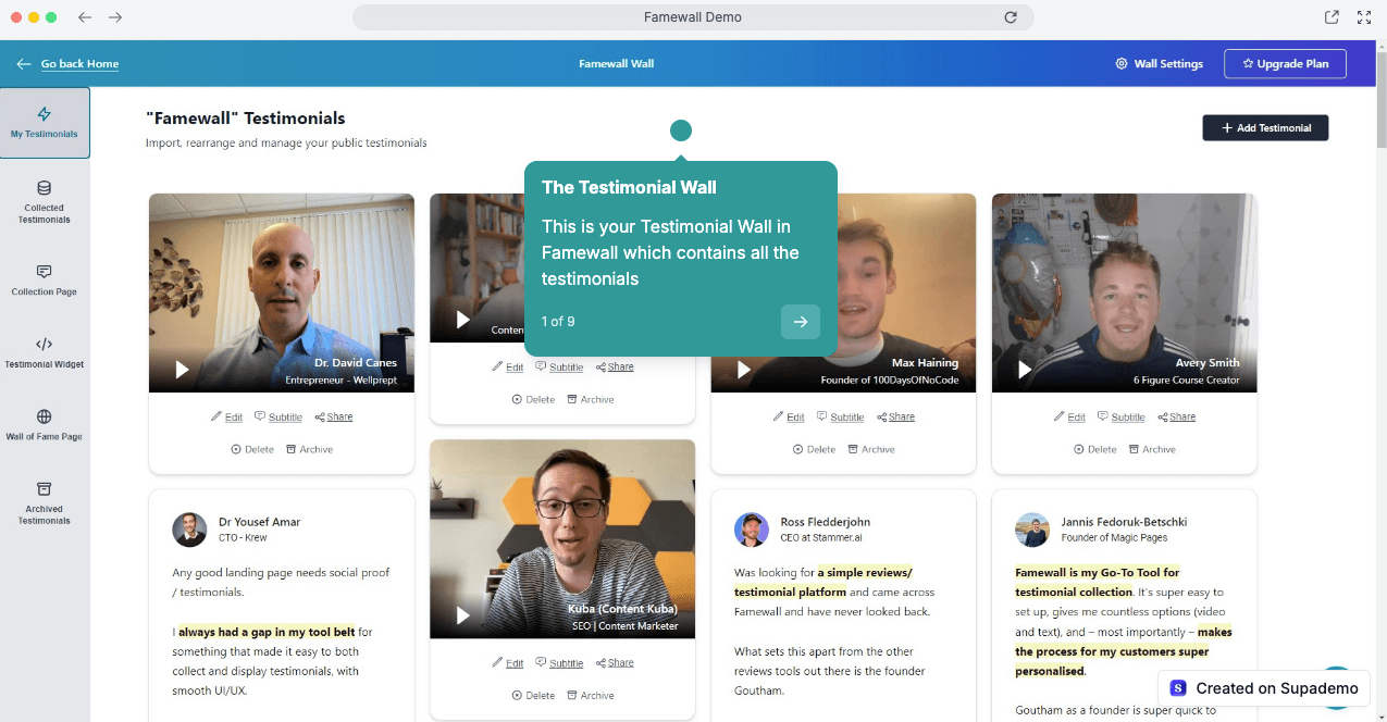 Famewall simplifies testimonial collection and makes showcasing social proof effortless.