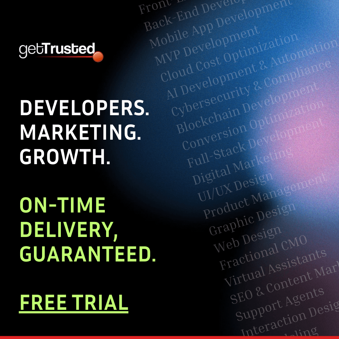 GetTrusted is an on-demand managed services platform that connects businesses with a global network of over 6,000 vetted professionals across 100+ skill categories, including software development, design, marketing, DevOps, and cybersecurity.