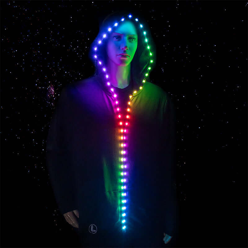 High-visibility LED apparel and accessories—including stick figure costumes, app-controlled face masks, illuminated hoodies, and pet gear—designed to enhance nighttime fun, safety, and standout style for both adults and kids.