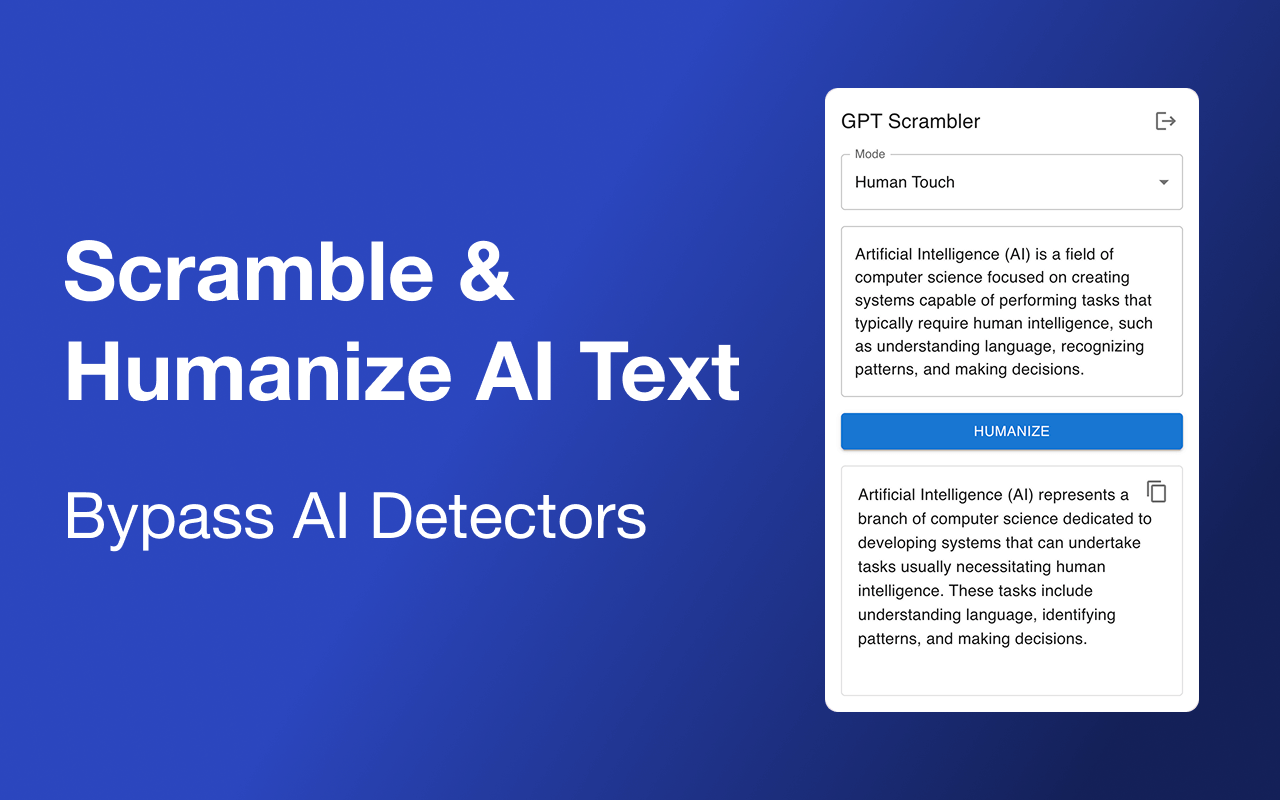 GPT Scrambler helps users rewrite AI-generated text to make it appear more natural and less detectable by AI content classifiers. The tool restructures wording, sentence flow, and phrasing while preserving the original meaning of the content. Typical users include students, marketers, content creators, and professionals who rely on AI writing tools but need more human-sounding outputs. It streamlines the content refinement process by quickly transforming drafts into polished, readable text.