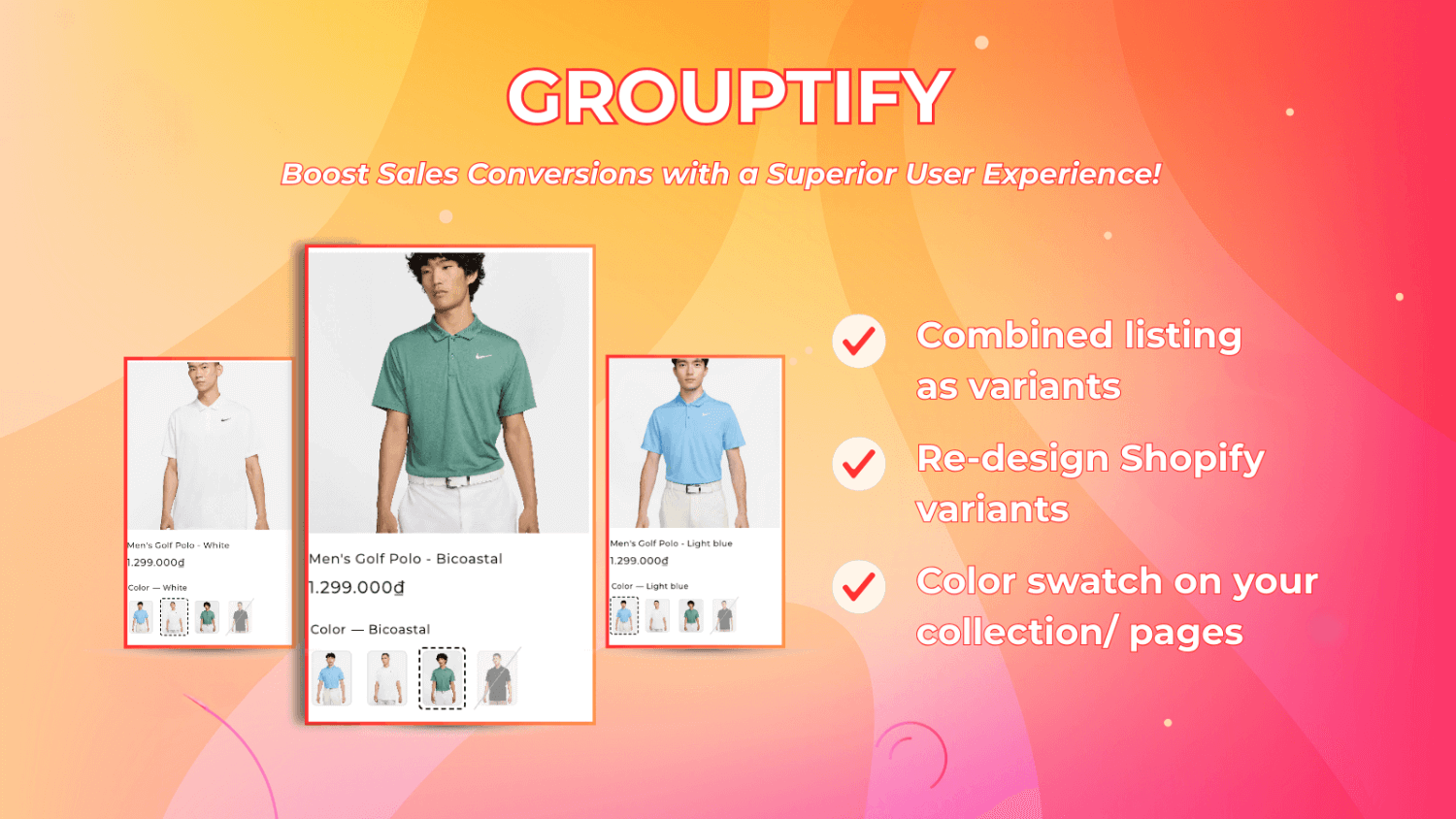 🧩 Unlimited Variant Grouping — Merge related products and bypass Shopify's 100-variant limit ⚙️ Automated Product Grouping — Auto-group products by tags, titles, or patterns in bulk 🖼️ Advanced Swatch Display — Add color swatches or images to enhance product variant UX 📈 SEO-Optimized Listings — Each variant gets its own SEO-friendly page and content 🔄 Bulk Import/Export — Manage large catalogs via CSV for fast updates and migration