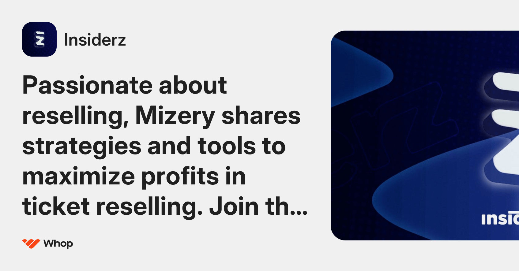 A paid membership hosted on Whop that provides tools, alerts, and data for the ticket reselling market. Includes features such as a GUI bot with queue modules, global reselling opportunities, restock alerts, and actionable flip calls. Offers community support, guides, and real-time monitors to help members improve reselling skills and profit potential. Typical users are ticket resellers and collectors looking for exclusive tools and insights to enhance performance.