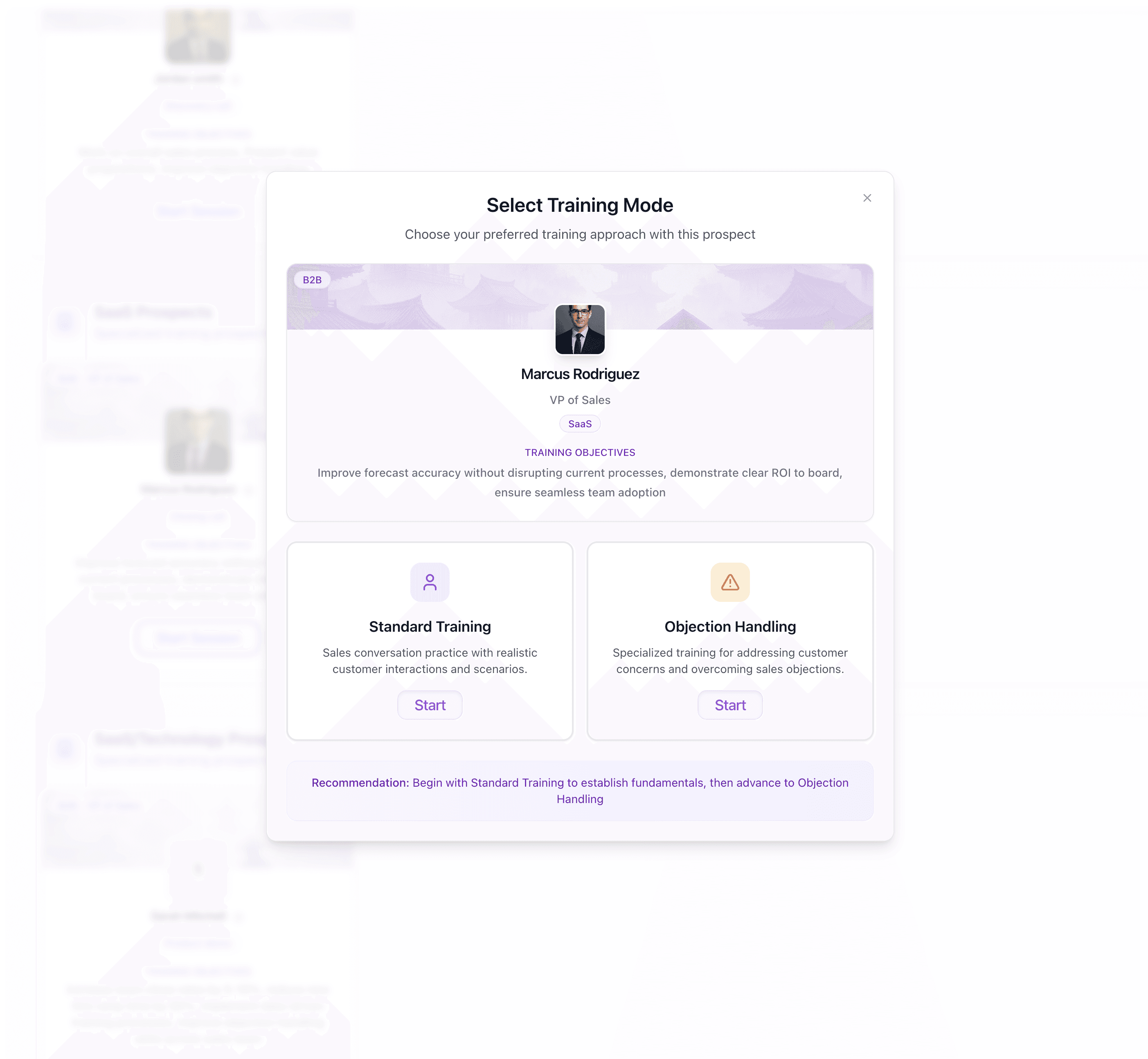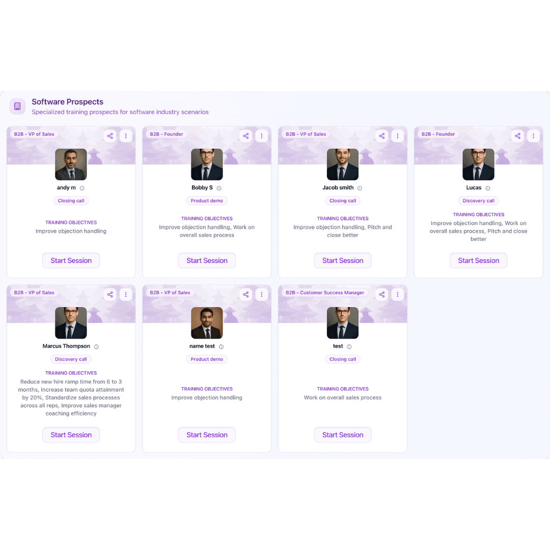 AI Roleplay Practice: realistic AI prospects for sales reps to train against.