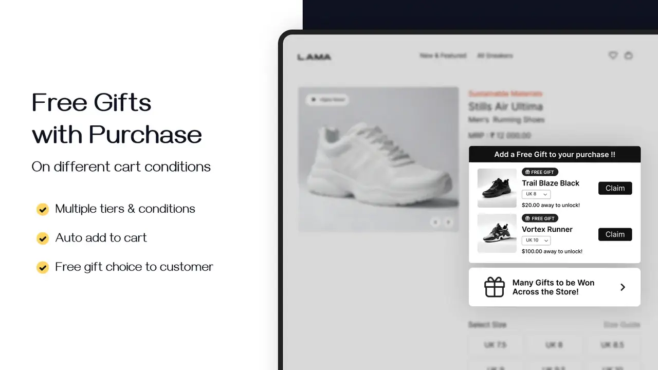 Boost sales by offering free gifts with purchases — no coding, no fuss, just more conversions.