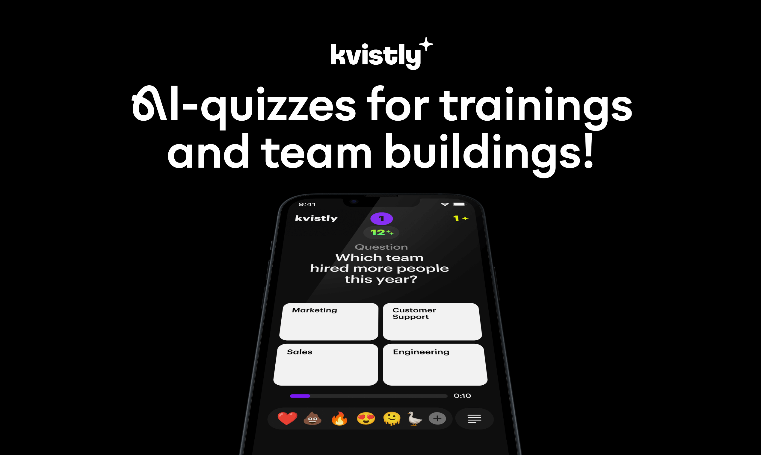 Kvistly is a smart quiz creation tool that enables companies and teams to: