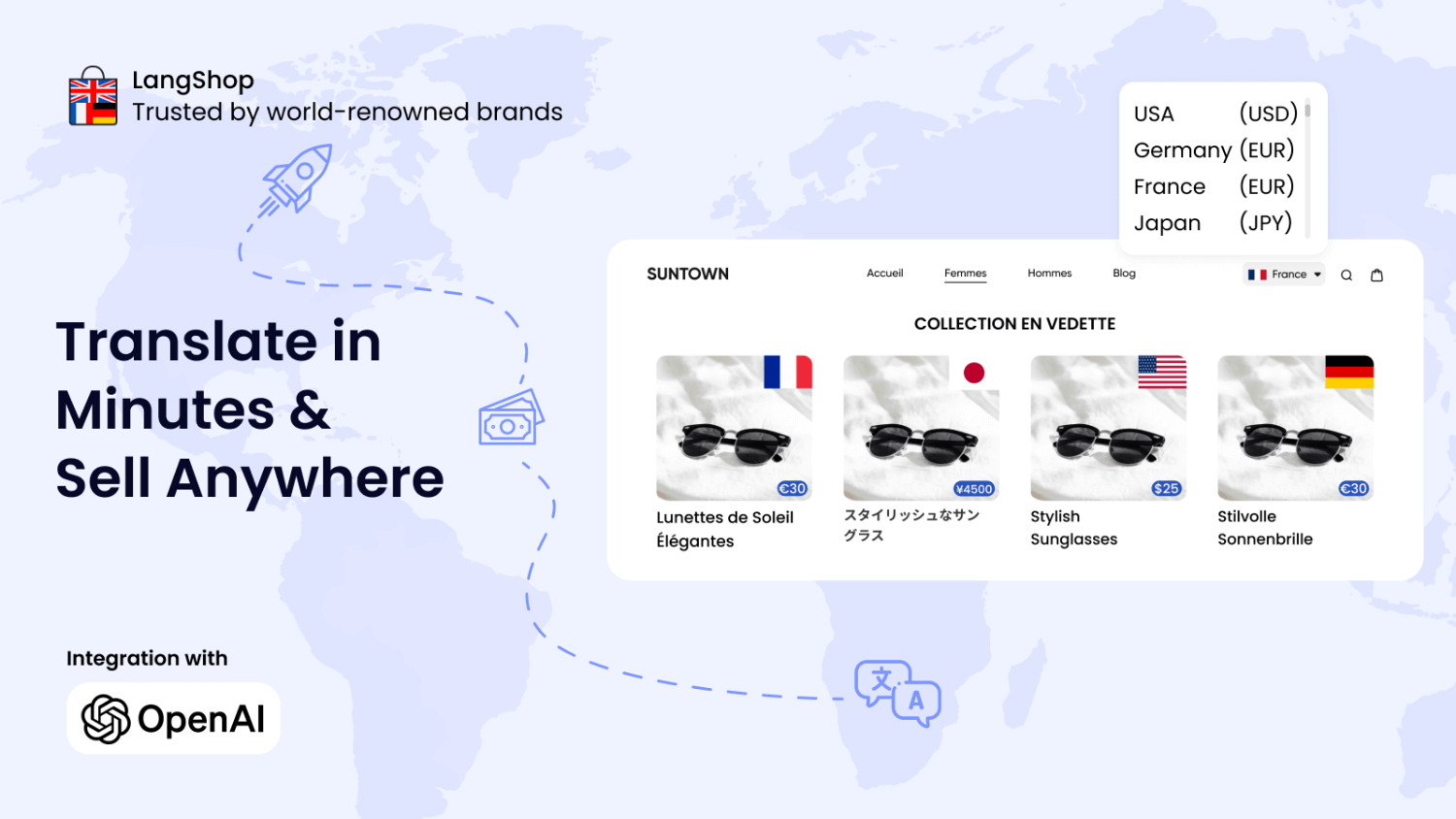 🌐 AI-Powered Translations — Auto-translates store content into 200+ languages with high accuracy 🧠 Context-Aware Localization — Understands product context for better translation quality 🏳️🌈 Multilingual SEO Support — Helps your store rank in local search engines 🛍️ Currency & Market Adaptation — Adjusts currency and content for each region ⚙️ Seamless Shopify Integration — Fully compatible with themes, apps, and checkout