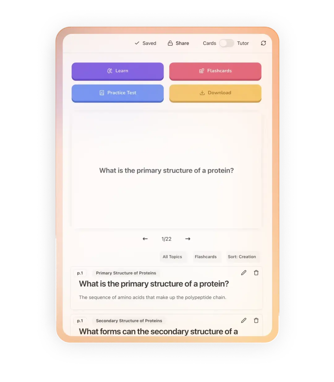 AI-powered study assistant turning PDFs, slides, and videos into flashcards, quizzes & personalized learning tracks.