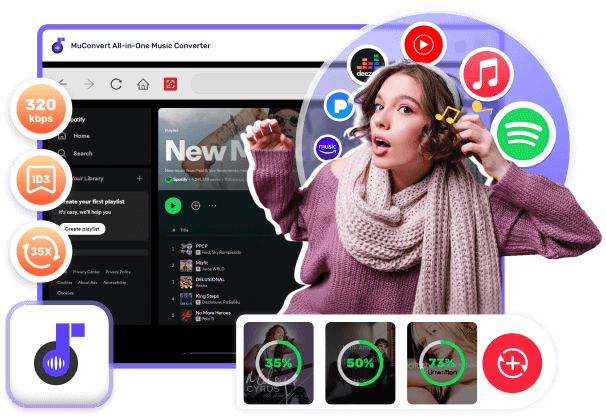 Convert and download streaming music & audio content offline in high-quality and batch speed. Supports converting audio from multiple streaming platforms (Spotify, Apple Music, Amazon Music, YouTube Music, etc.) to formats like MP3, WAV, FLAC. High-speed batch downloads (up to ~35× faster) and preserving original audio quality (e.g., 320 kbps) and ID3 metadata. Embedded web players for convenience (e.g., Spotify web player integration inside converter) so you don’t need separate apps. No-DRM output formats and broad device compatibility — once converted, the audio can be played on any device.Customer Q&A