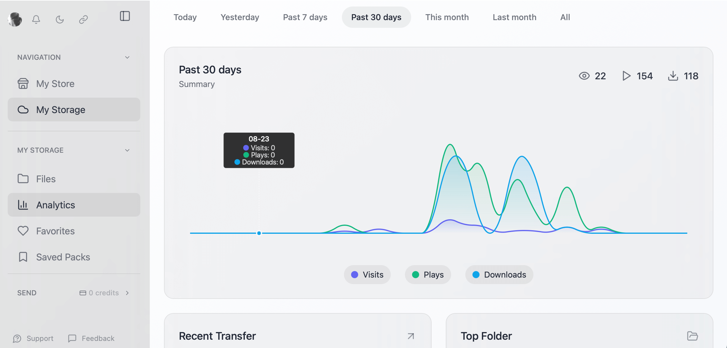 Cloud audio workspace: securely store, manage & share your tracks with quick audio-analysis on upload.