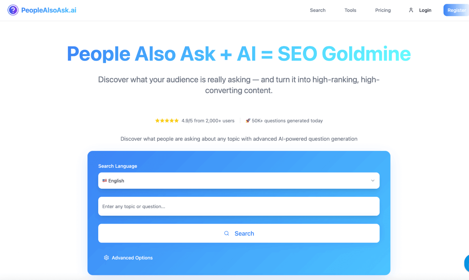 ❓ Find Public Questions Access thousands of real user questions from Google PAA (People Also Ask) instantly 🔄 Real-Time Data Results are fresh and reflect current search intent, not static or outdated databases 🔎 Explore Topic Trees Visualize how questions are related — uncover subtopics and long-tail opportunities easily 📚 Answer Research & Planning Use collected questions to plan blog posts, FAQ pages, landing pages, and YouTube content 🔗 People Also Search For (PASFs) See related search topics people click after their query