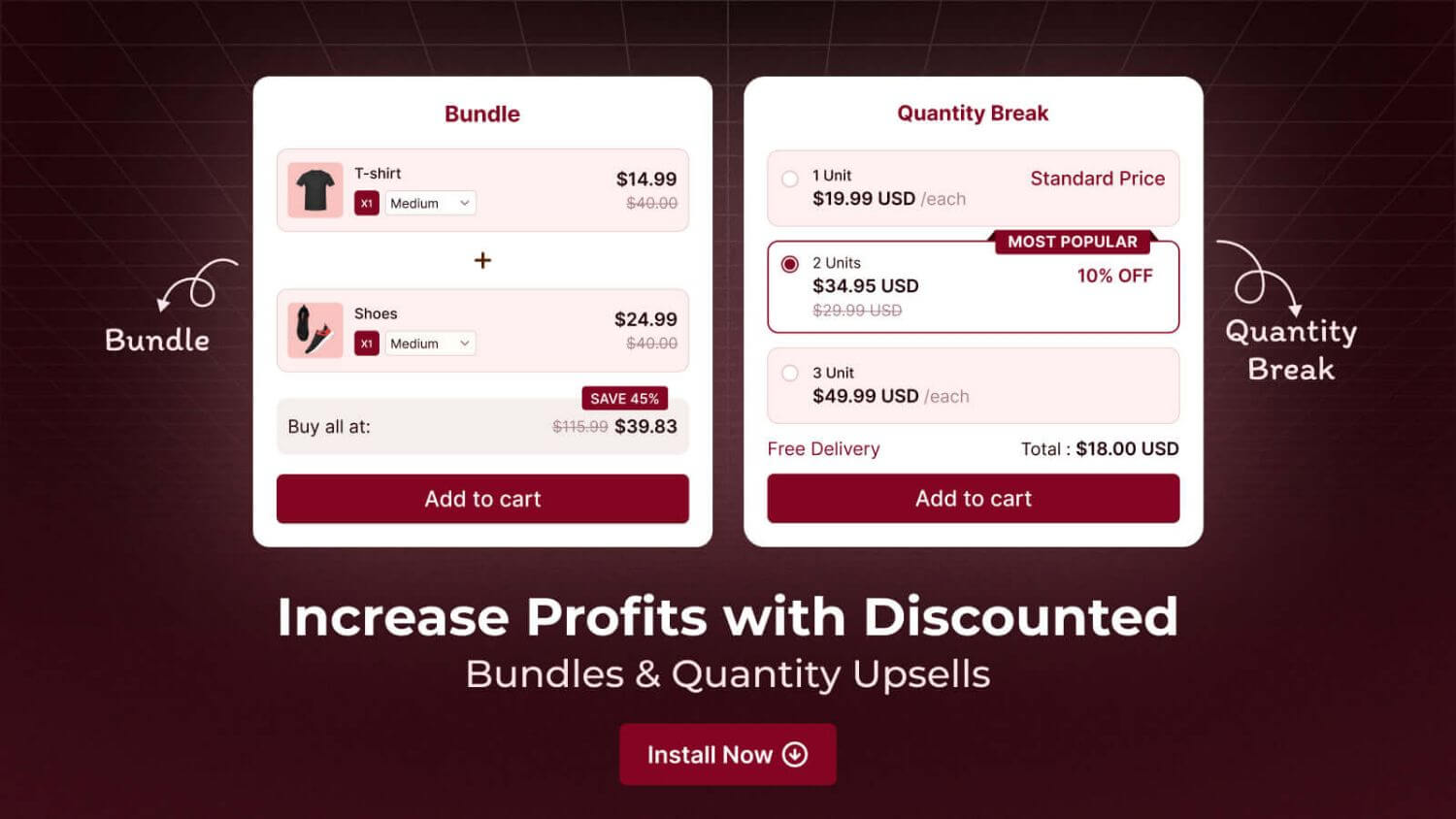 Boost AOV by 20–30% with high-converting quantity breaks and product bundles above the Add-to-Cart button.