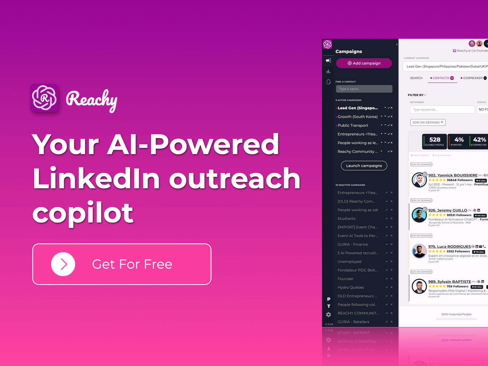 AI-Powered Personalization: Reachy integrates with OpenAI's GPT-4 model to personalize messages, translate them into the prospect's language, and even suggest replies to keep the conversation going.