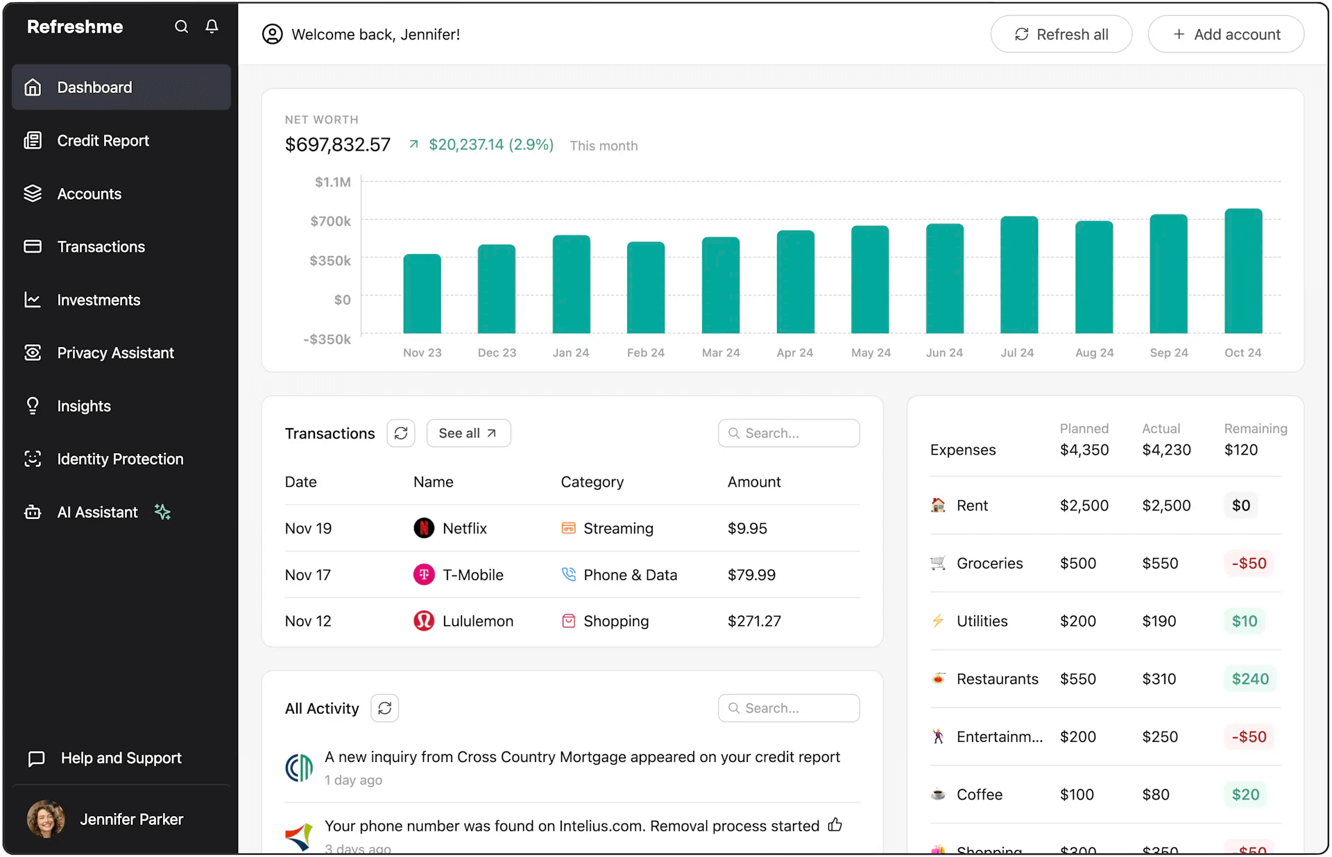 With tools to track investment performance and manage online privacy, Refresh.me empowers users to take control of their financial future from a single, seamless interface.