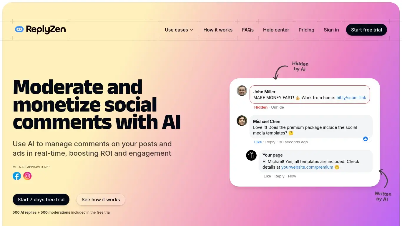 ReplyZen is your automated AI assistant for social media comment sections. It helps you: