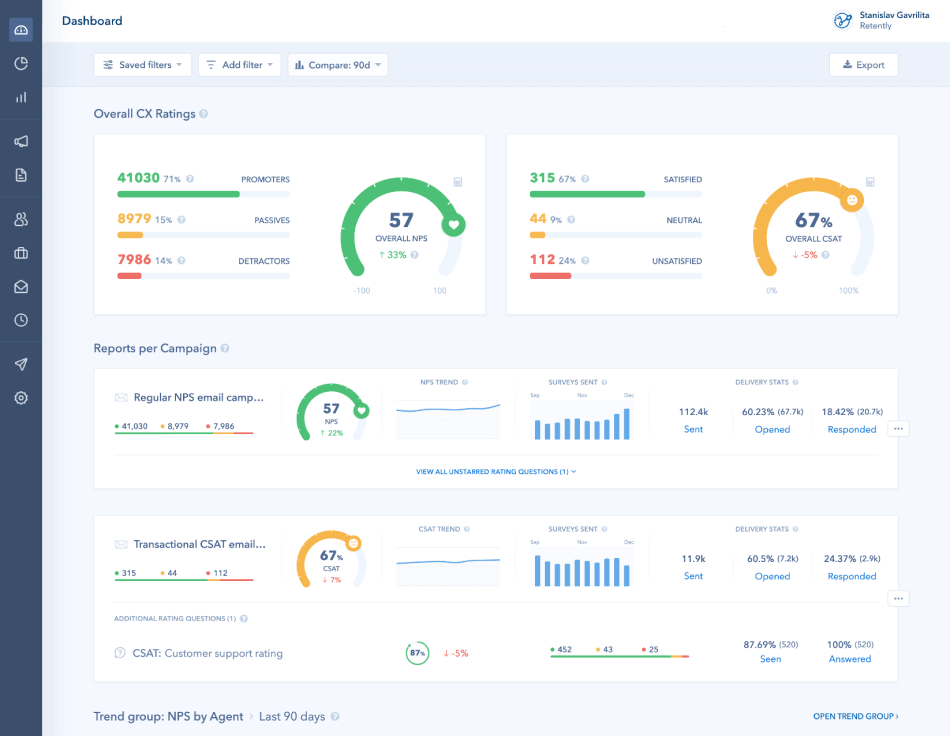 Why Choose Retently? ✅ Real-time customer feedback & alerts ✅ Powerful analytics & automation ✅ Deep integrations to fit your existing stack ✅ Used by 1,000+ leading brands ✅ Easy migration from Delighted (with 2 months free)