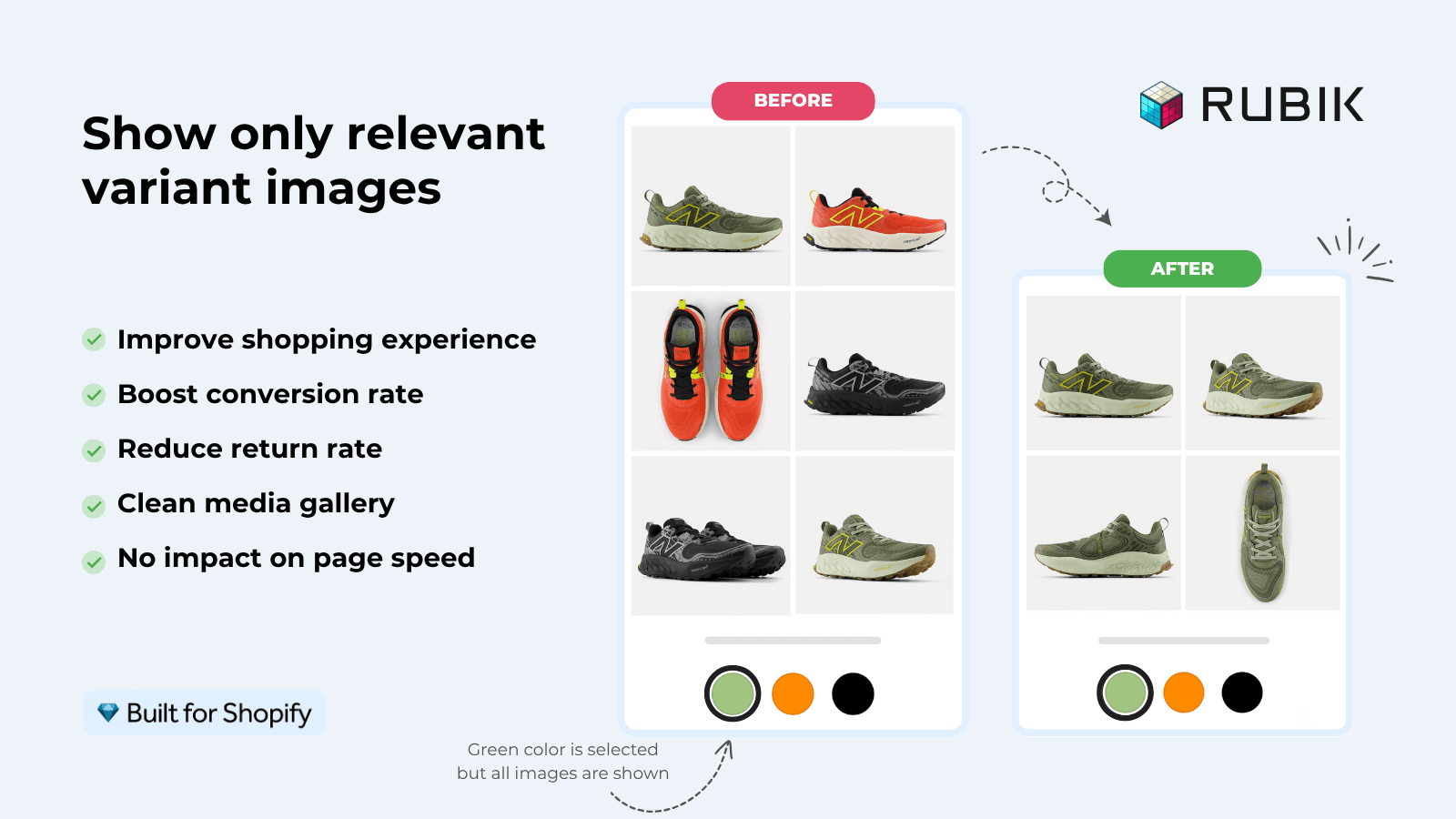 Show the right product images for each variant to improve shopping experience and reduce confusion.