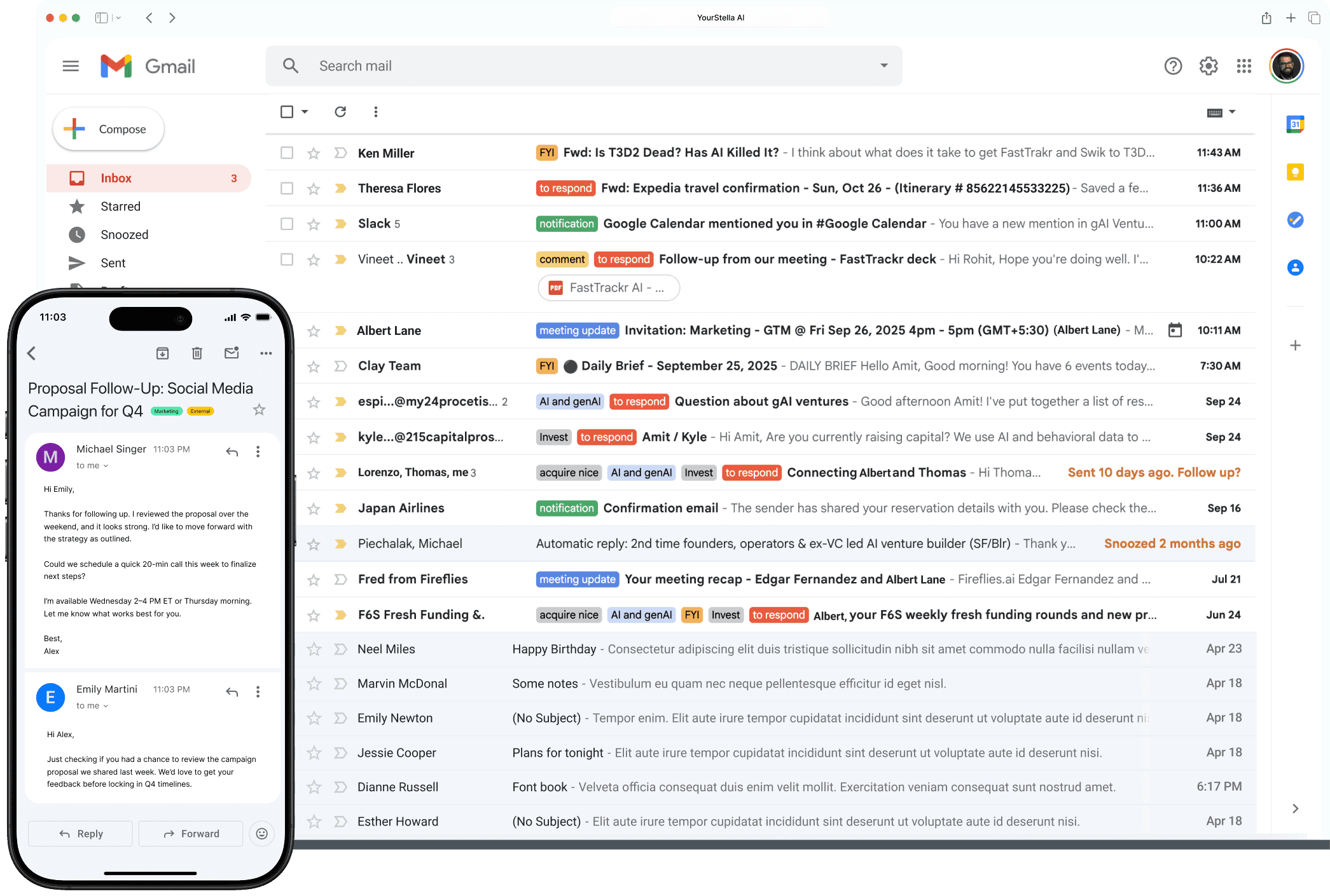 Stella AI acts as your AI-powered executive assistant, working directly inside your inbox (Gmail or Outlook) to: