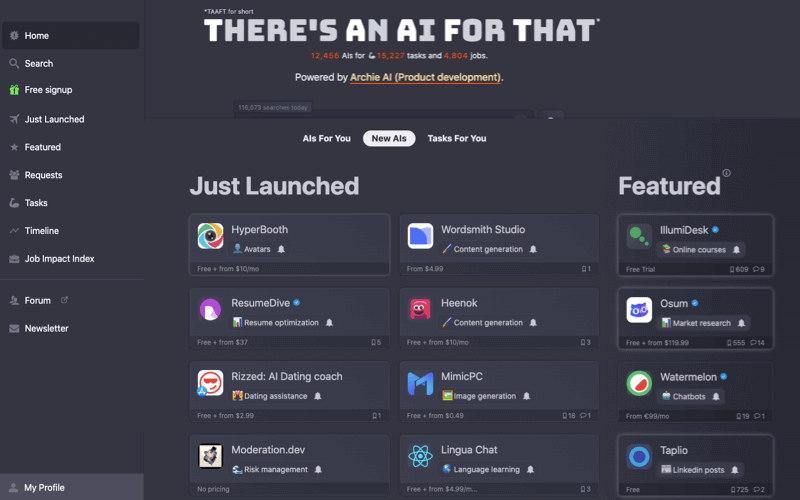 A massive AI-tool directory + daily newsletter helping you discover the right AI for any task.