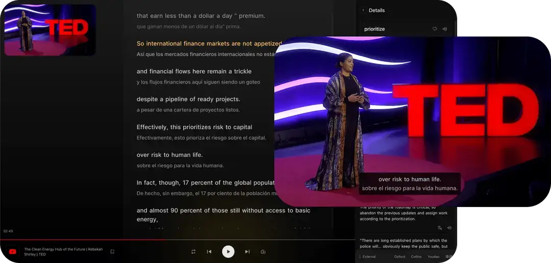 *Watch YouTube/Netflix with bilingual subtitles and instant translations.